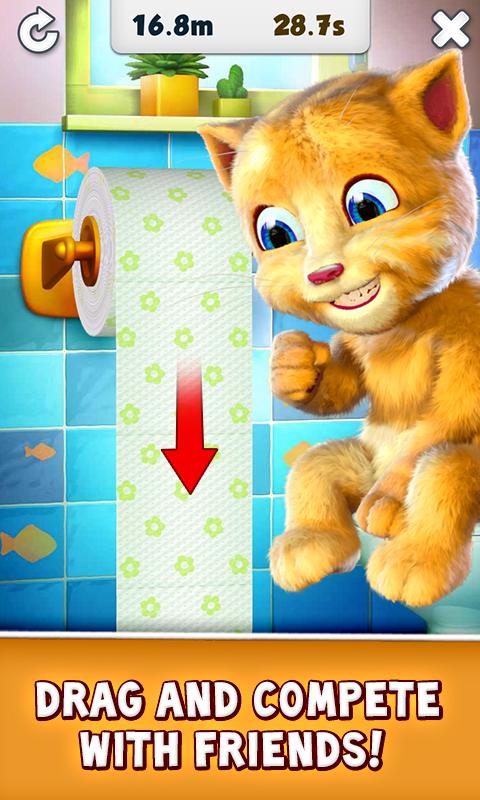 - Play games with Ginger: Pop toothpaste bubbles, roll down the toilet paper and play the jigsaw puzzle game.